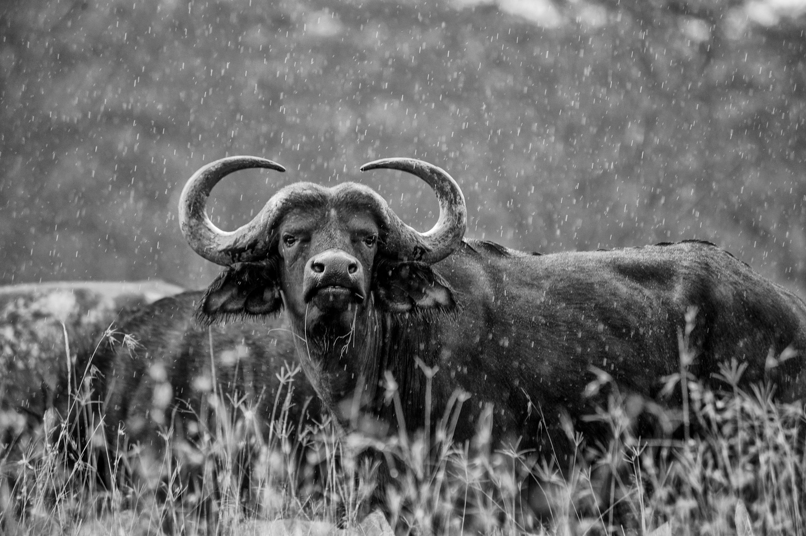 Gelada Landscape - Living on the high altitude mountain plateaus of Ethiopia’s Simien Mountains, you find the Gelada baboon. These hairy creatures sleep on the vertical cliffs, climbing up to the plateau every day, to feed on grass. Here a big male is distracted by a root tuber, allowing me to get close enough with a wide angle lens.